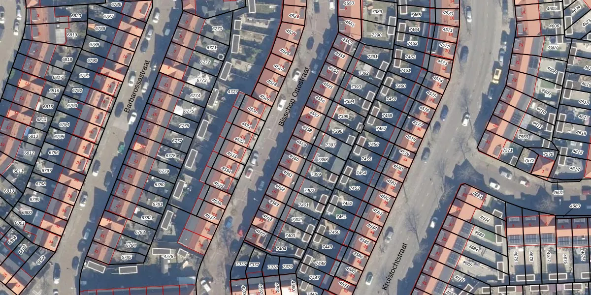Het perceel waarop Bisschop Ottostraat 23 staat heeft een oppervlakte van 44 m². Dit is een klein perceel. De perceeloppervlakte wordt geregistreerd door het Kadaster. Gedetailleerde informatie over de maten van dit perceel kunt u vinden in het rapport Kadastrale kaart met maatvoering van Bisschop Ottostraat 23.