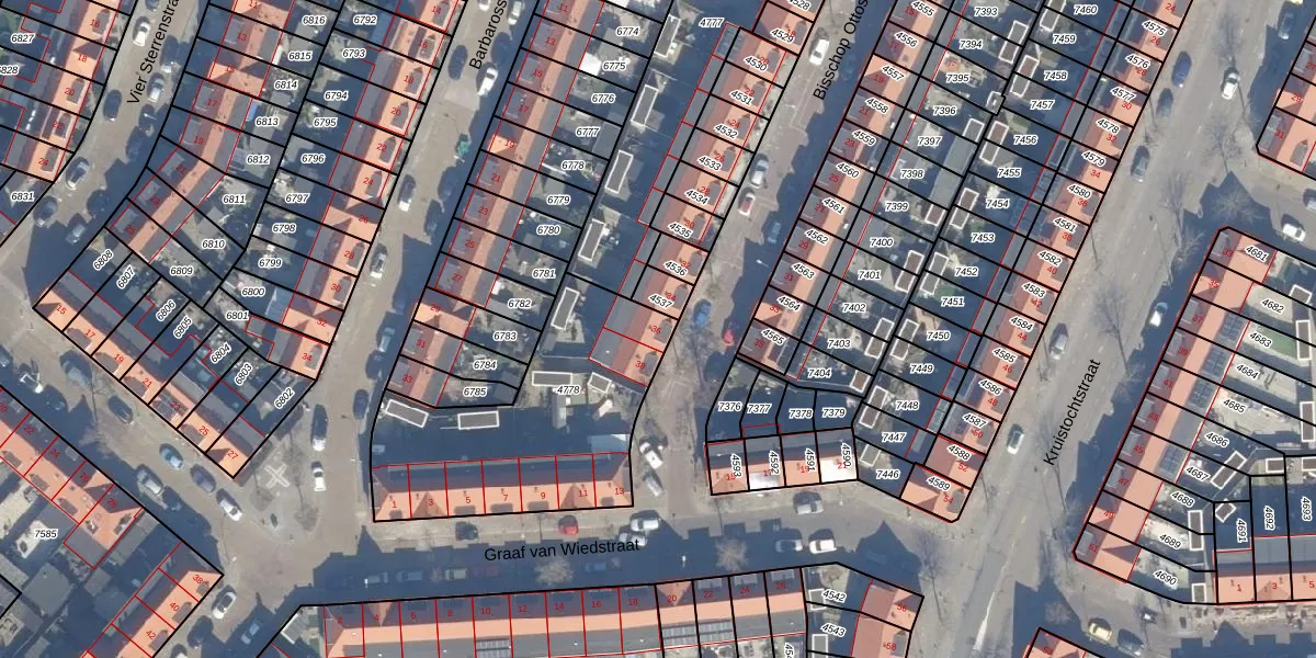 Het adres ligt op het perceel HLM01-E-4778, dat zich in de kadastrale gemeente Haarlem bevindt. De oppervlakte van het perceel is 1000 m². Dat is groter dan gemiddeld in Haarlem, waar de gemiddelde perceeloppervlakte op 328,23 m² ligt. Het grootste perceel in de kadastrale gemeente is 13,9 ha. Het kleinste perceel heeft een oppervlakte van 0 m². Op het perceel zijn 9 adressen aanwezig. De laatste wijziging in het de Basisregistratie Kadaster (BRK) was op 25-04-2019.