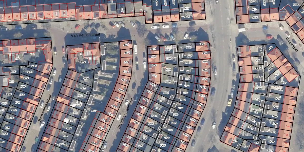 Gebruik de zoekbalk of klik op een perceel voor informatie over de adressen binnen dit perceel.