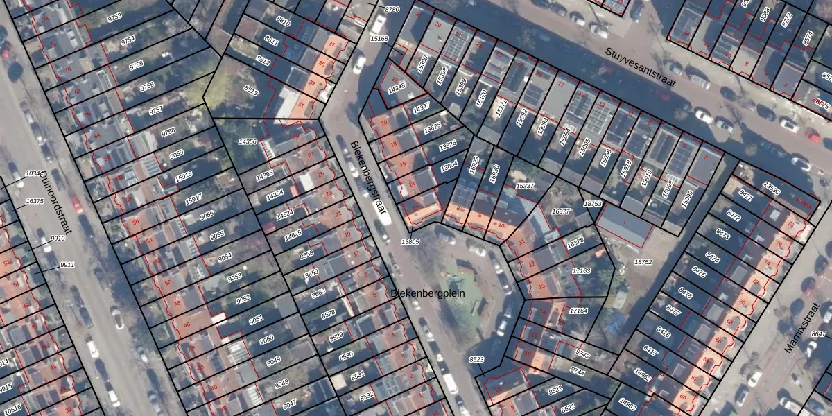 Gebruik de zoekbalk of klik op een perceel voor informatie over de adressen binnen dit perceel.