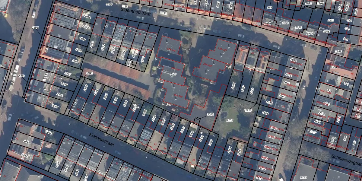 Bloemhofstraat 18-A is gelegen op kadastraal perceel HLM01K3043. Deze kadastrale aanduiding is uniek en wordt gebruikt door het Kadaster om eigendomsrechten en andere zakelijke rechten vast te leggen. Het perceel maakt onderdeel uit van de kadastrale gemeente Haarlem.