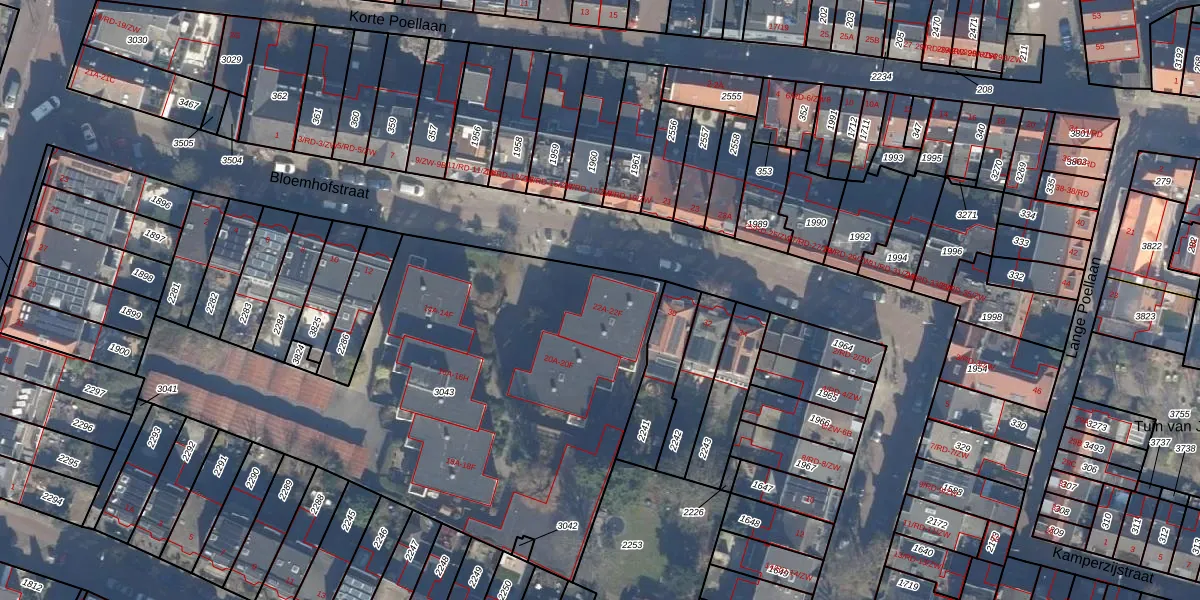 Bloemhofstraat 22-A is gelegen op kadastraal perceel HLM01K3043. Deze kadastrale aanduiding is uniek en wordt gebruikt door het Kadaster om eigendomsrechten en andere zakelijke rechten vast te leggen. Het perceel maakt onderdeel uit van de kadastrale gemeente Haarlem.