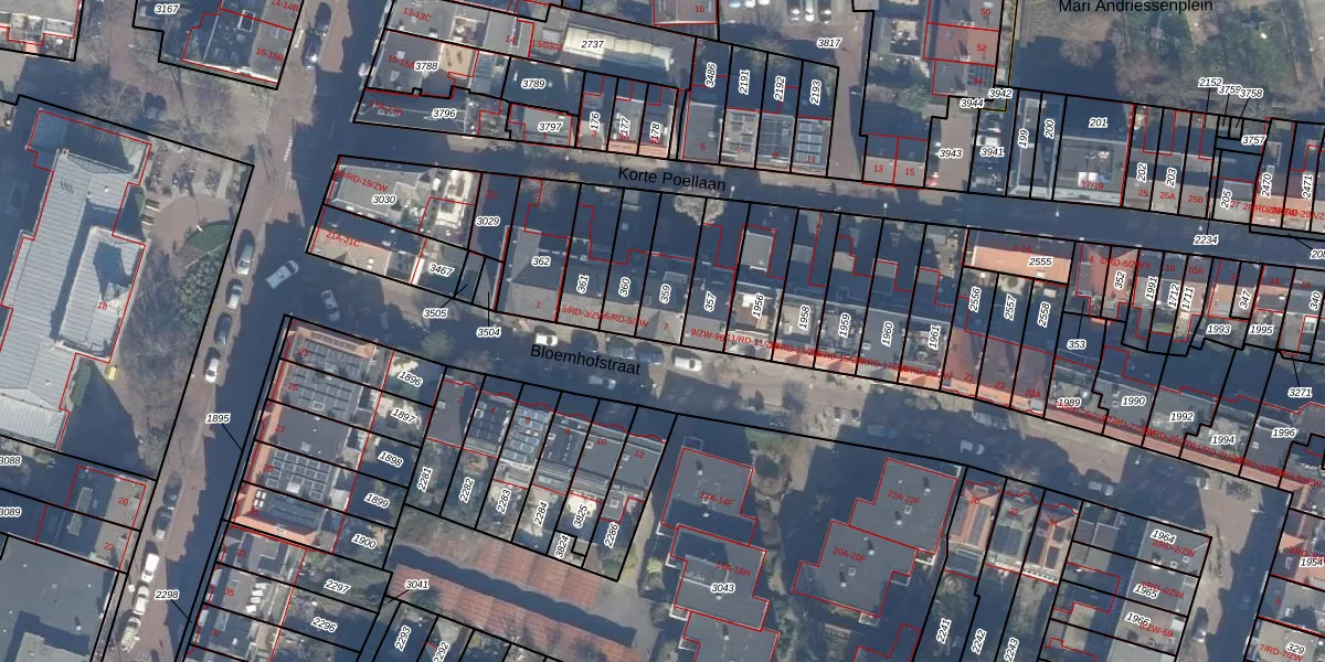 Gebruik de zoekbalk of klik op een perceel voor informatie over de adressen binnen dit perceel.