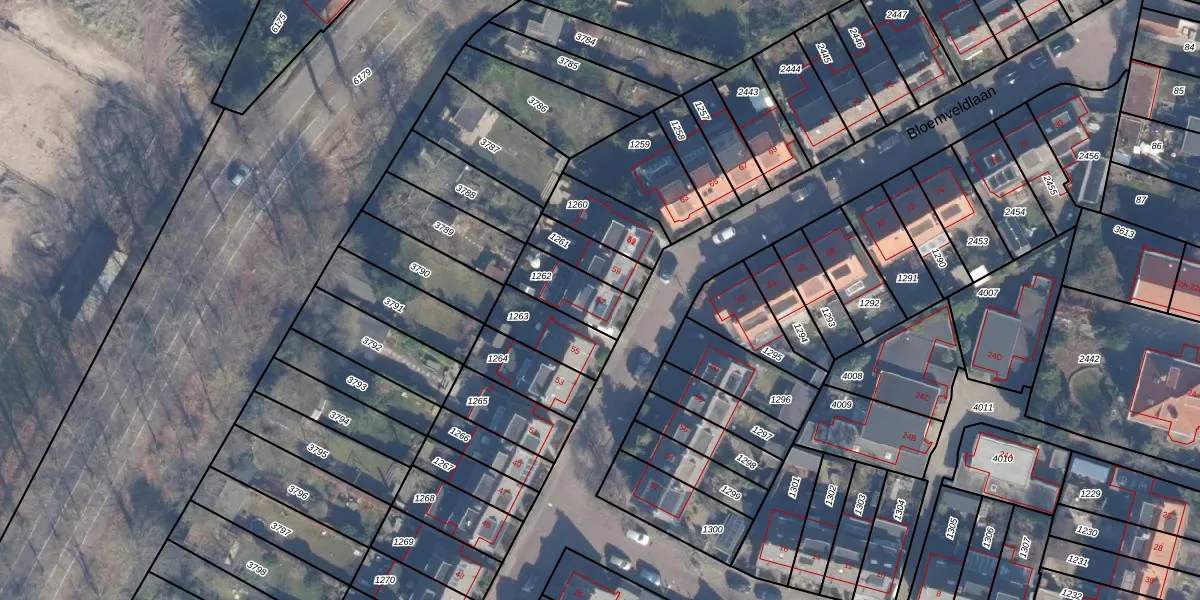 Bloemveldlaan 57 is gelegen op kadastraal perceel HLM02T1262. Deze kadastrale aanduiding is uniek en wordt gebruikt door het Kadaster om eigendomsrechten en andere zakelijke rechten vast te leggen. Het perceel maakt onderdeel uit van de kadastrale gemeente Haarlem.