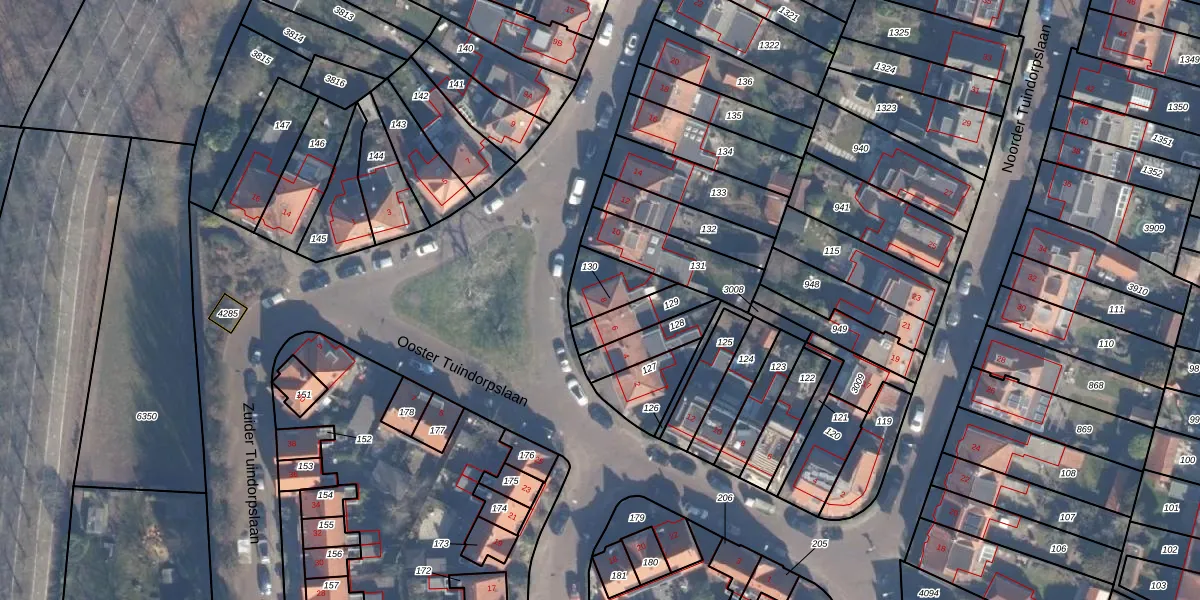 Gebruik de zoekbalk of klik op een perceel voor informatie over de adressen binnen dit perceel.