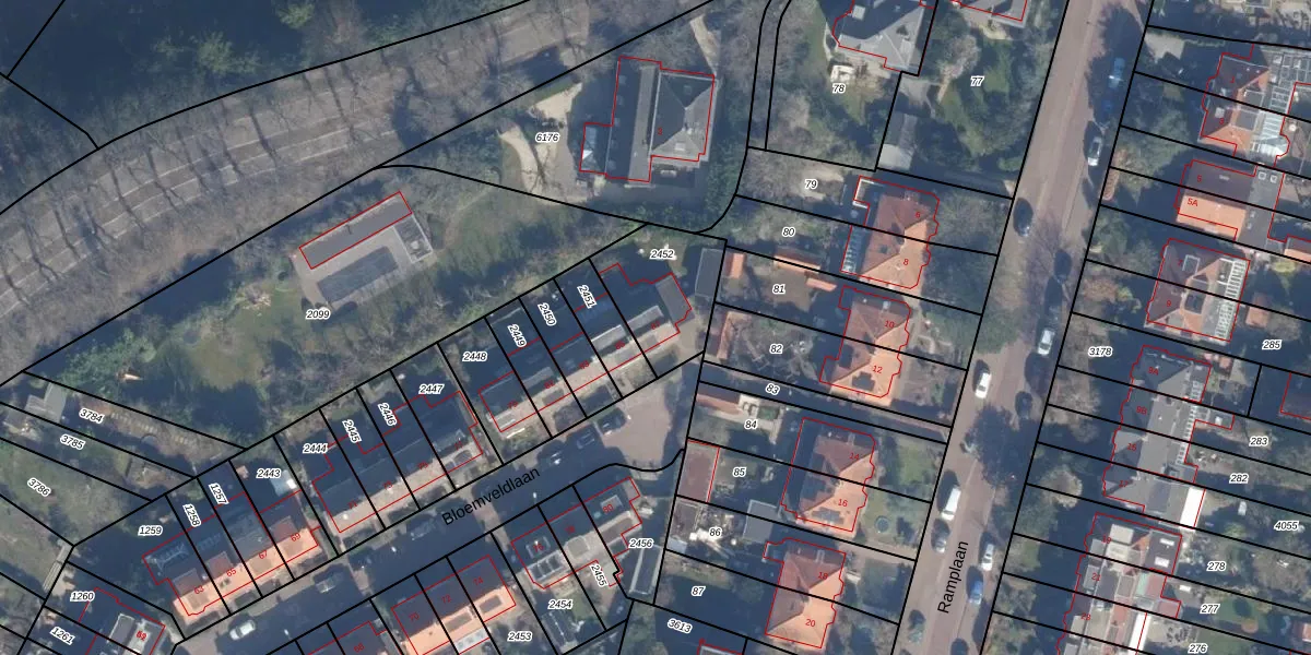Gebruik de zoekbalk of klik op een perceel voor informatie over de adressen binnen dit perceel.