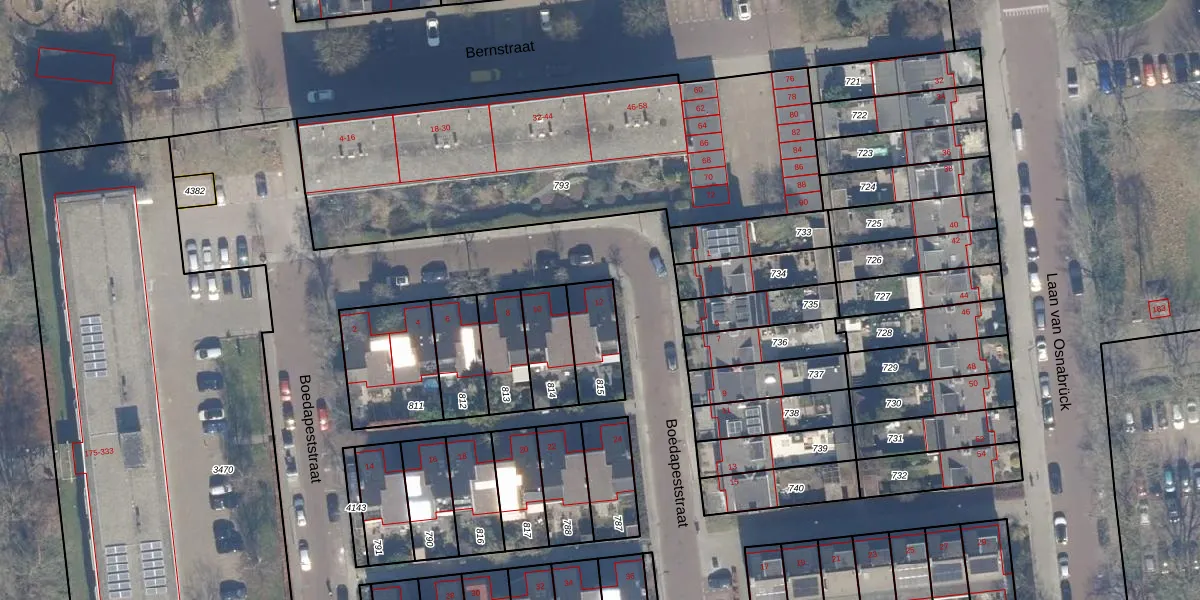 Het perceel waarop Boedapeststraat 12 staat heeft een oppervlakte van 154 m². Dit is een middelgroot perceel. De perceeloppervlakte wordt geregistreerd door het Kadaster. Gedetailleerde informatie over de maten van dit perceel kunt u vinden in het rapport Kadastrale kaart met maatvoering van Boedapeststraat 12.