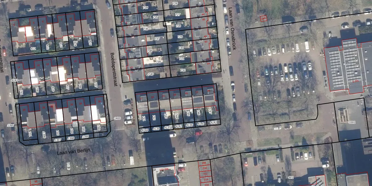 Het perceel waarop Boedapeststraat 25 staat heeft een oppervlakte van 114 m². Dit is een middelgroot perceel. De perceeloppervlakte wordt geregistreerd door het Kadaster. Gedetailleerde informatie over de maten van dit perceel kunt u vinden in het rapport Kadastrale kaart met maatvoering van Boedapeststraat 25.