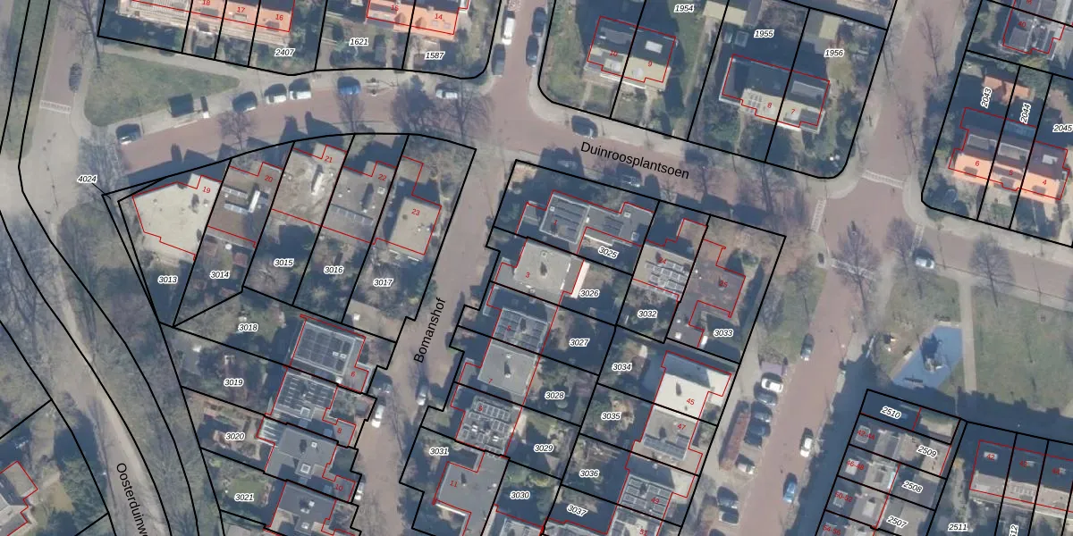 Het perceel waarop Bomanshof 3 staat heeft een oppervlakte van 259 m². Dit is een middelgroot perceel. De perceeloppervlakte wordt geregistreerd door het Kadaster. Gedetailleerde informatie over de maten van dit perceel kunt u vinden in het rapport Kadastrale kaart met maatvoering van Bomanshof 3.