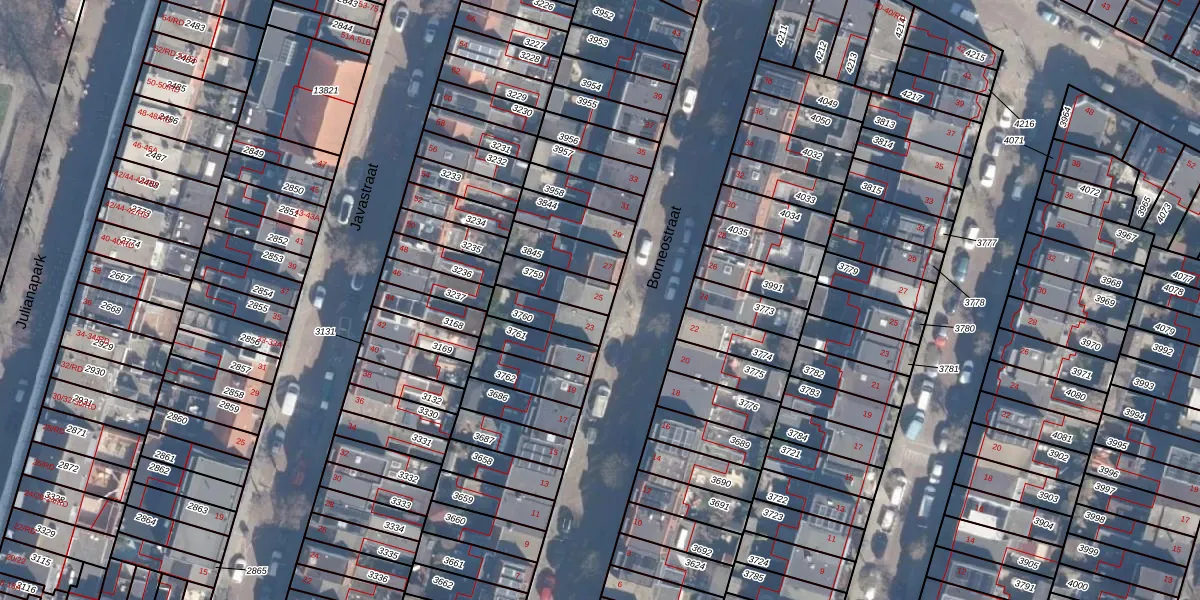 Het perceel waarop Borneostraat 25 staat heeft een oppervlakte van 106 m². Dit is een middelgroot perceel. De perceeloppervlakte wordt geregistreerd door het Kadaster. Gedetailleerde informatie over de maten van dit perceel kunt u vinden in het rapport Kadastrale kaart met maatvoering van Borneostraat 25.