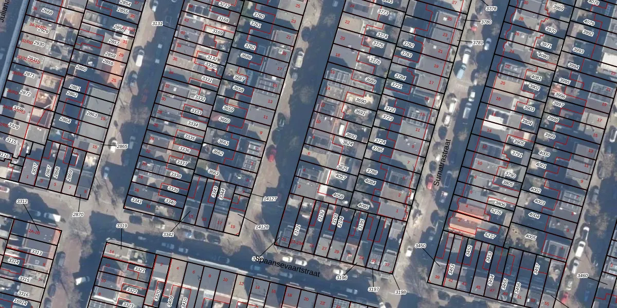 Gebruik de zoekbalk of klik op een perceel voor informatie over de adressen binnen dit perceel.