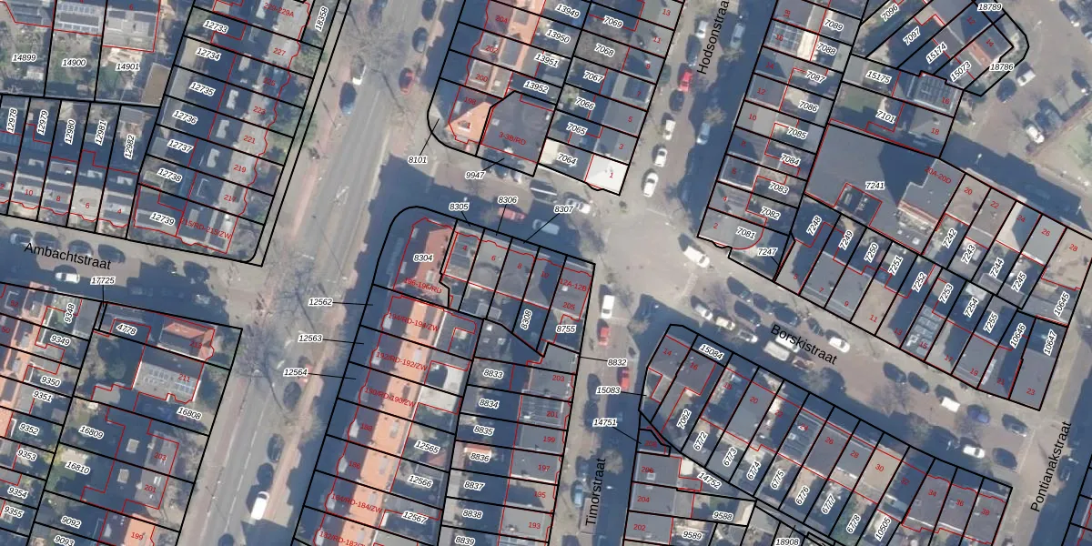 Het perceel waarop Borskistraat 10 staat heeft een oppervlakte van 90 m². Dit is een klein perceel. De perceeloppervlakte wordt geregistreerd door het Kadaster. Gedetailleerde informatie over de maten van dit perceel kunt u vinden in het rapport Kadastrale kaart met maatvoering van Borskistraat 10.