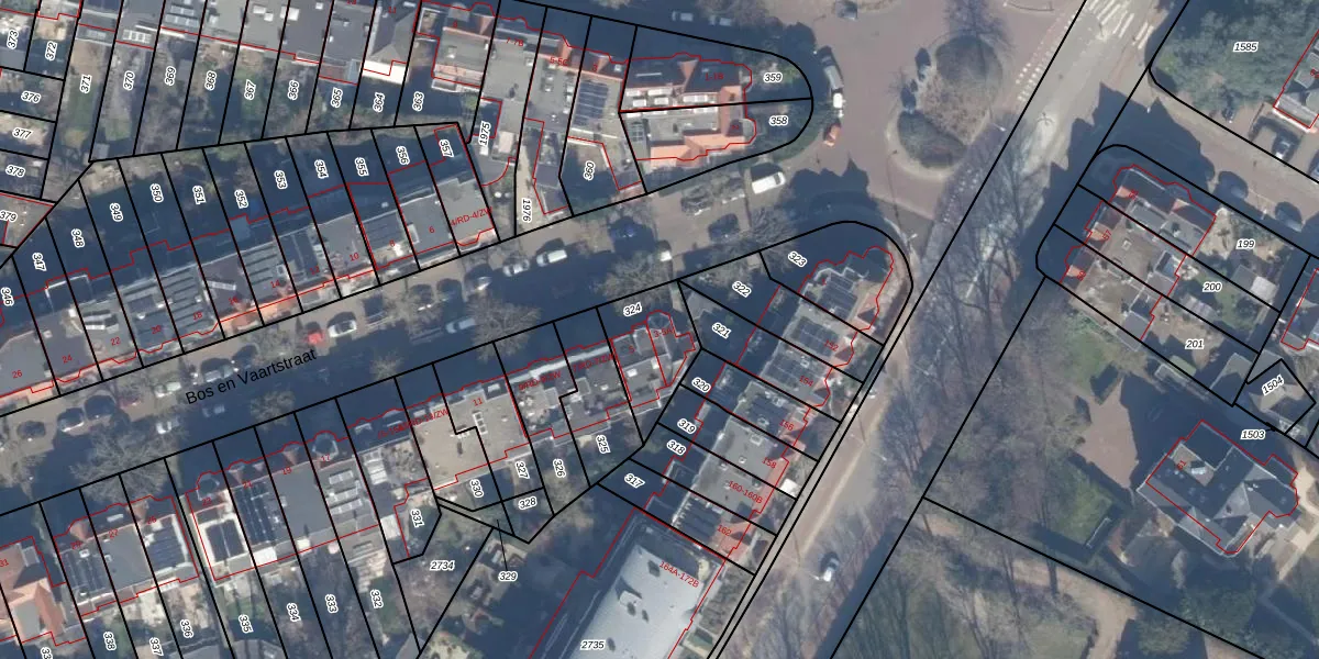 Bos en Vaartstraat 5-A is gelegen op kadastraal perceel HLM02S324. Deze kadastrale aanduiding is uniek en wordt gebruikt door het Kadaster om eigendomsrechten en andere zakelijke rechten vast te leggen. Het perceel maakt onderdeel uit van de kadastrale gemeente Haarlem.