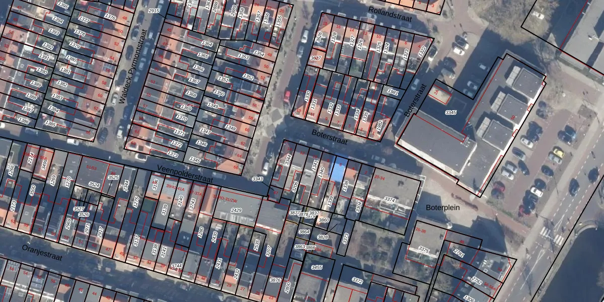 Het perceel waarop Boterstraat 12 staat heeft een oppervlakte van 90 m². Dit is een klein perceel. De perceeloppervlakte wordt geregistreerd door het Kadaster. Gedetailleerde informatie over de maten van dit perceel kunt u vinden in het rapport Kadastrale kaart met maatvoering van Boterstraat 12.