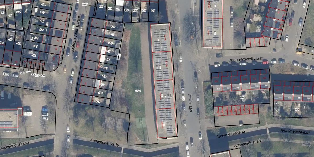 Het perceel waarop Braillelaan 11-G staat heeft een oppervlakte van 2640 m². Dit is een zeer groot perceel. De perceeloppervlakte wordt geregistreerd door het Kadaster. Gedetailleerde informatie over de maten van dit perceel kunt u vinden in het rapport Kadastrale kaart met maatvoering van Braillelaan 11-G.