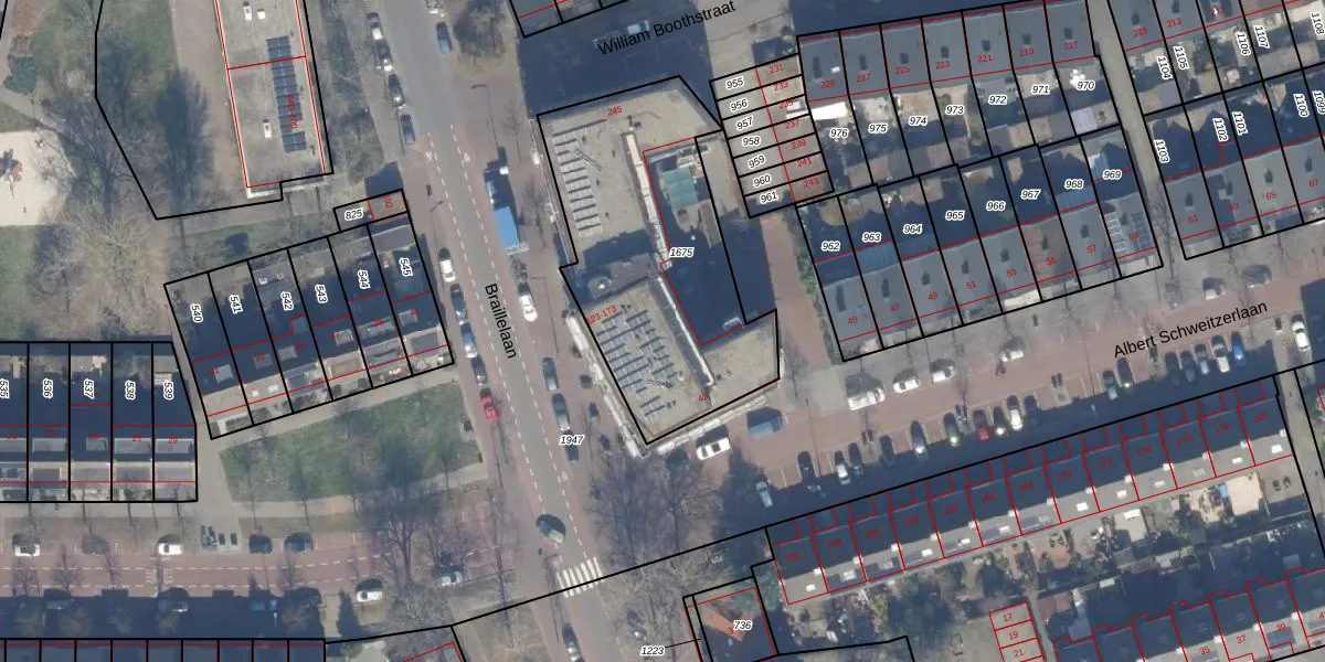 Braillelaan 145 is gelegen op kadastraal perceel HLM02X1675. Deze kadastrale aanduiding is uniek en wordt gebruikt door het Kadaster om eigendomsrechten en andere zakelijke rechten vast te leggen. Het perceel maakt onderdeel uit van de kadastrale gemeente Haarlem.