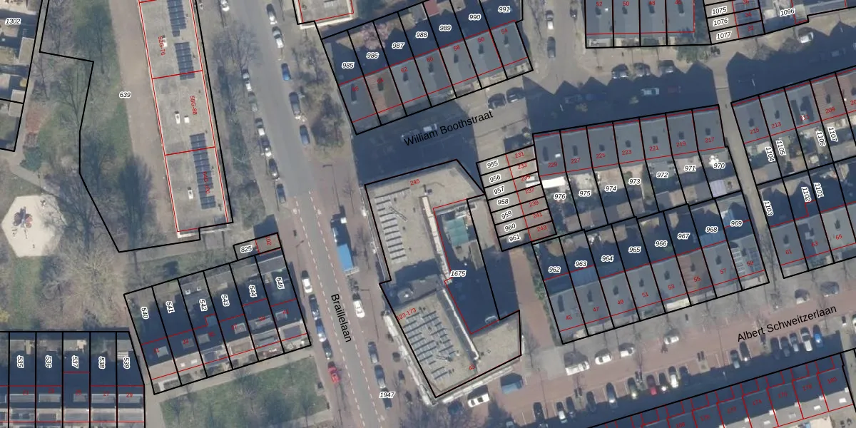 Het perceel waarop Braillelaan 153 staat heeft een oppervlakte van 1178 m². Dit is een zeer groot perceel. De perceeloppervlakte wordt geregistreerd door het Kadaster. Gedetailleerde informatie over de maten van dit perceel kunt u vinden in het rapport Kadastrale kaart met maatvoering van Braillelaan 153.