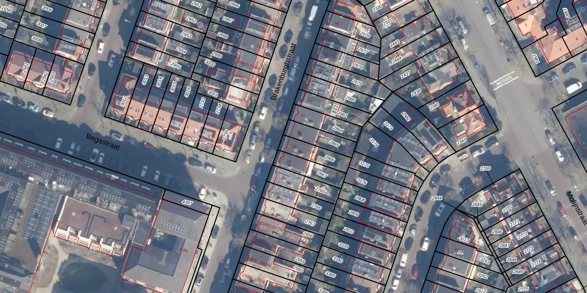 Brakenburghstraat 33 is gelegen op kadastraal perceel HLM01G2866. Deze kadastrale aanduiding is uniek en wordt gebruikt door het Kadaster om eigendomsrechten en andere zakelijke rechten vast te leggen. Het perceel maakt onderdeel uit van de kadastrale gemeente Haarlem.
