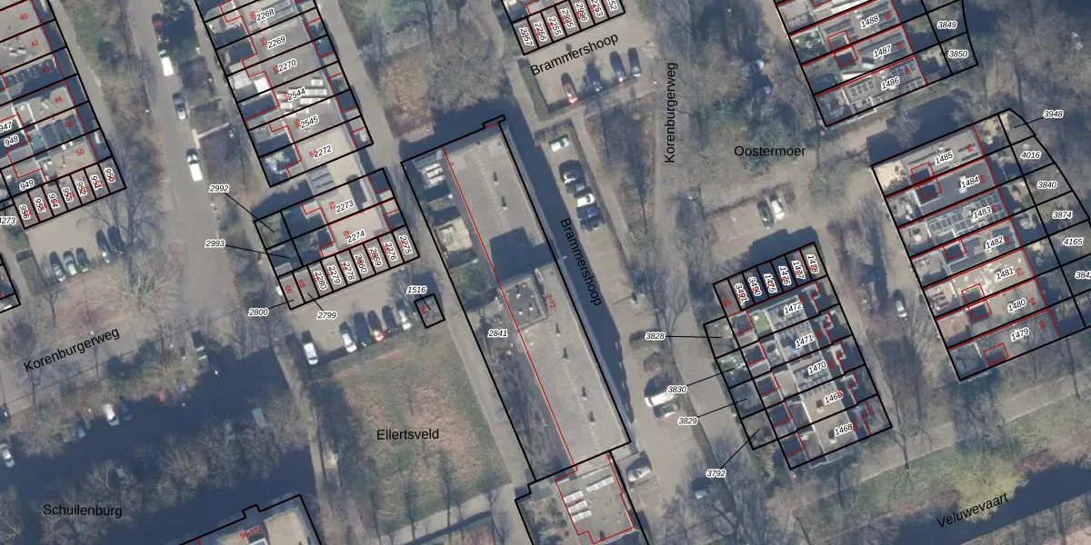 Het perceel waarop Brammershoop 8 staat heeft een oppervlakte van 1211 m². Dit is een zeer groot perceel. De perceeloppervlakte wordt geregistreerd door het Kadaster. Gedetailleerde informatie over de maten van dit perceel kunt u vinden in het rapport Kadastrale kaart met maatvoering van Brammershoop 8.
