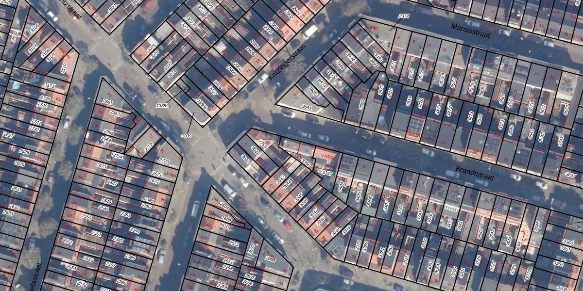 Het perceel waarop Brandtstraat 2 staat heeft een oppervlakte van 79 m². Dit is een klein perceel. De perceeloppervlakte wordt geregistreerd door het Kadaster. Gedetailleerde informatie over de maten van dit perceel kunt u vinden in het rapport Kadastrale kaart met maatvoering van Brandtstraat 2.