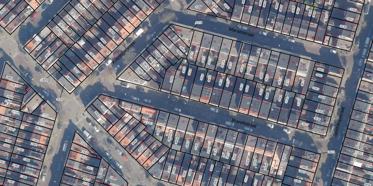 Gebruik de zoekbalk of klik op een perceel voor informatie over de adressen binnen dit perceel.
