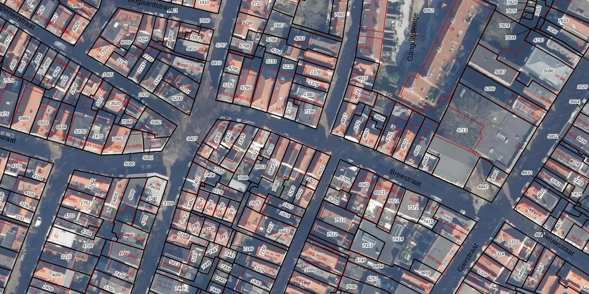 Het perceel waarop Breestraat 14 staat heeft een oppervlakte van 121 m². Dit is een middelgroot perceel. De perceeloppervlakte wordt geregistreerd door het Kadaster. Gedetailleerde informatie over de maten van dit perceel kunt u vinden in het rapport Kadastrale kaart met maatvoering van Breestraat 14.