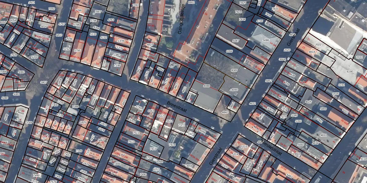 Het perceel waarop Breestraat 23-A staat heeft een oppervlakte van 86 m². Dit is een klein perceel. De perceeloppervlakte wordt geregistreerd door het Kadaster. Gedetailleerde informatie over de maten van dit perceel kunt u vinden in het rapport Kadastrale kaart met maatvoering van Breestraat 23-A.