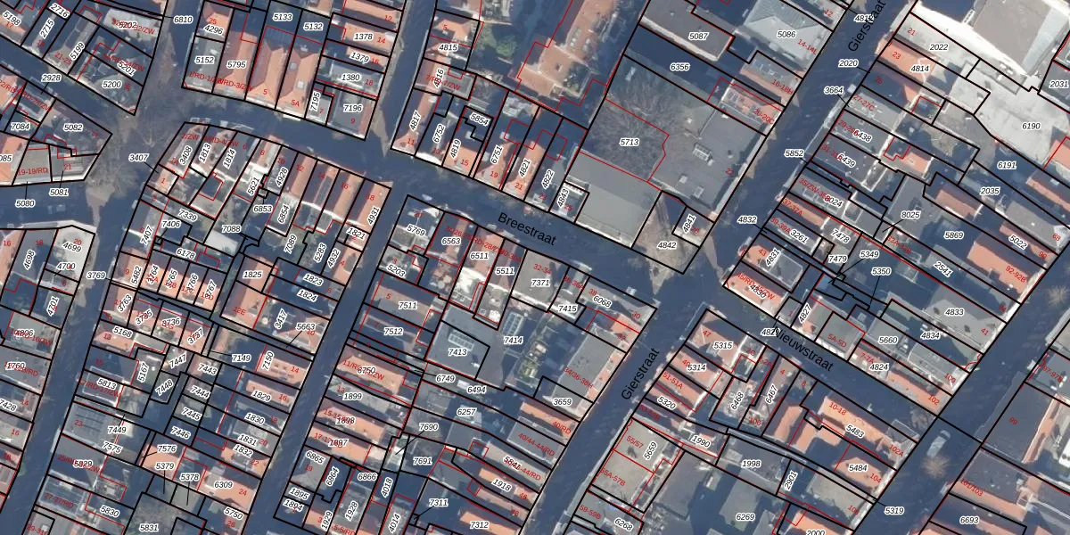 Het perceel waarop Breestraat 32 staat heeft een oppervlakte van 77 m². Dit is een klein perceel. De perceeloppervlakte wordt geregistreerd door het Kadaster. Gedetailleerde informatie over de maten van dit perceel kunt u vinden in het rapport Kadastrale kaart met maatvoering van Breestraat 32.