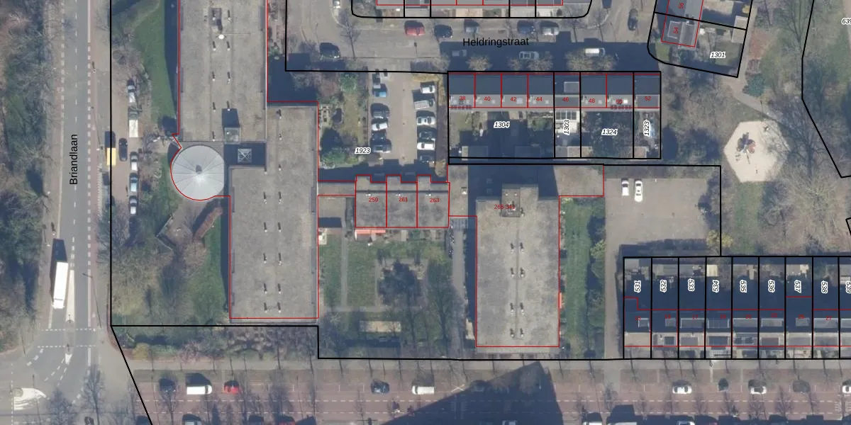 Briandlaan 263 is gelegen op kadastraal perceel HLM02X1923. Deze kadastrale aanduiding is uniek en wordt gebruikt door het Kadaster om eigendomsrechten en andere zakelijke rechten vast te leggen. Het perceel maakt onderdeel uit van de kadastrale gemeente Haarlem.