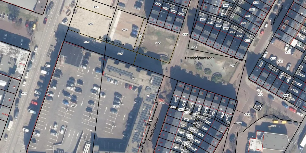 Het perceel waarop Brockwaystraat 1 staat heeft een oppervlakte van 2345 m². Dit is een zeer groot perceel. De perceeloppervlakte wordt geregistreerd door het Kadaster. Gedetailleerde informatie over de maten van dit perceel kunt u vinden in het rapport Kadastrale kaart met maatvoering van Brockwaystraat 1.