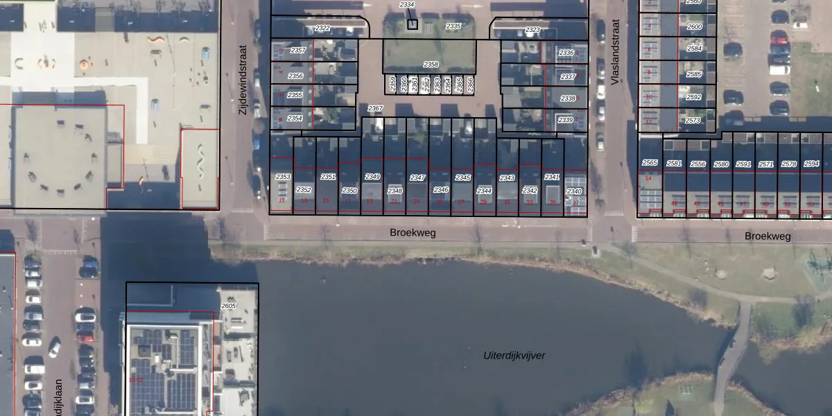 Broekweg 23 is gelegen op kadastraal perceel HLM02Q2347. Deze kadastrale aanduiding is uniek en wordt gebruikt door het Kadaster om eigendomsrechten en andere zakelijke rechten vast te leggen. Het perceel maakt onderdeel uit van de kadastrale gemeente Haarlem.