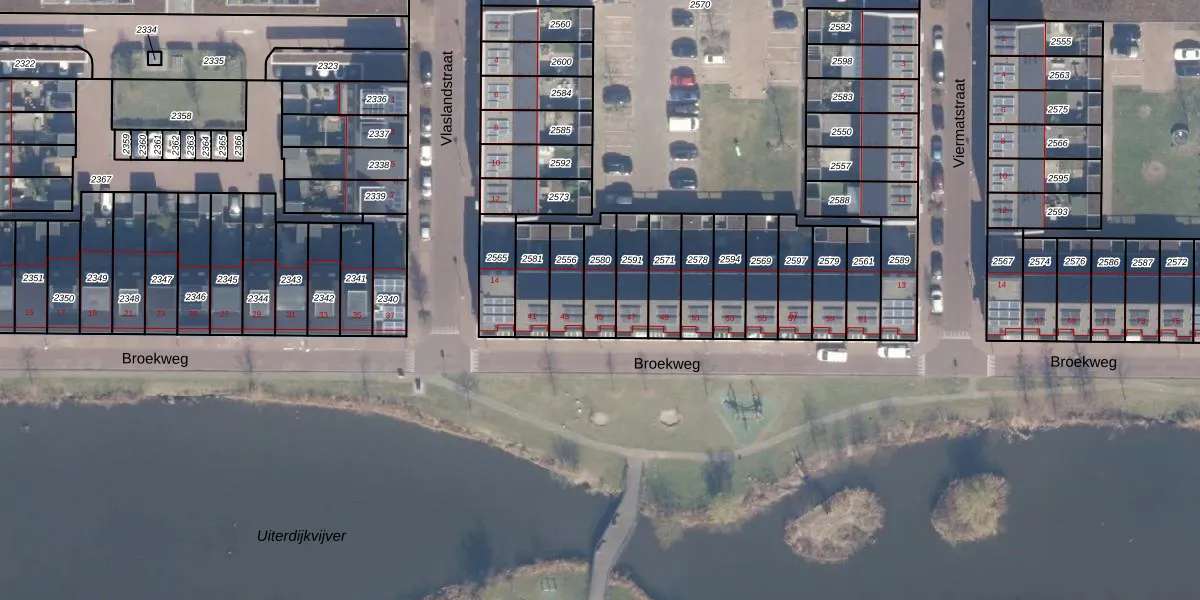 Broekweg 45 is gelegen op kadastraal perceel HLM02Q2580. Deze kadastrale aanduiding is uniek en wordt gebruikt door het Kadaster om eigendomsrechten en andere zakelijke rechten vast te leggen. Het perceel maakt onderdeel uit van de kadastrale gemeente Haarlem.