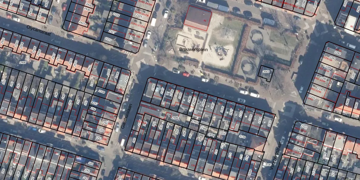 Het perceel waarop Brouwersplein 34 staat heeft een oppervlakte van 75 m². Dit is een klein perceel. De perceeloppervlakte wordt geregistreerd door het Kadaster. Gedetailleerde informatie over de maten van dit perceel kunt u vinden in het rapport Kadastrale kaart met maatvoering van Brouwersplein 34.