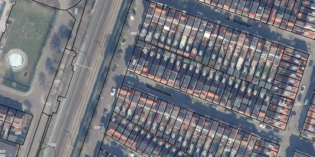 Het perceel waarop Brouwersstraat 141 staat heeft een oppervlakte van 91 m². Dit is een klein perceel. De perceeloppervlakte wordt geregistreerd door het Kadaster. Gedetailleerde informatie over de maten van dit perceel kunt u vinden in het rapport Kadastrale kaart met maatvoering van Brouwersstraat 141.