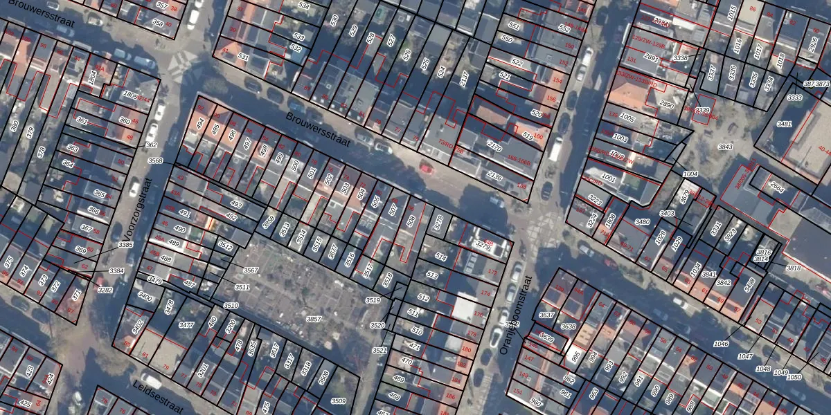 Gebruik de zoekbalk of klik op een perceel voor informatie over de adressen binnen dit perceel.