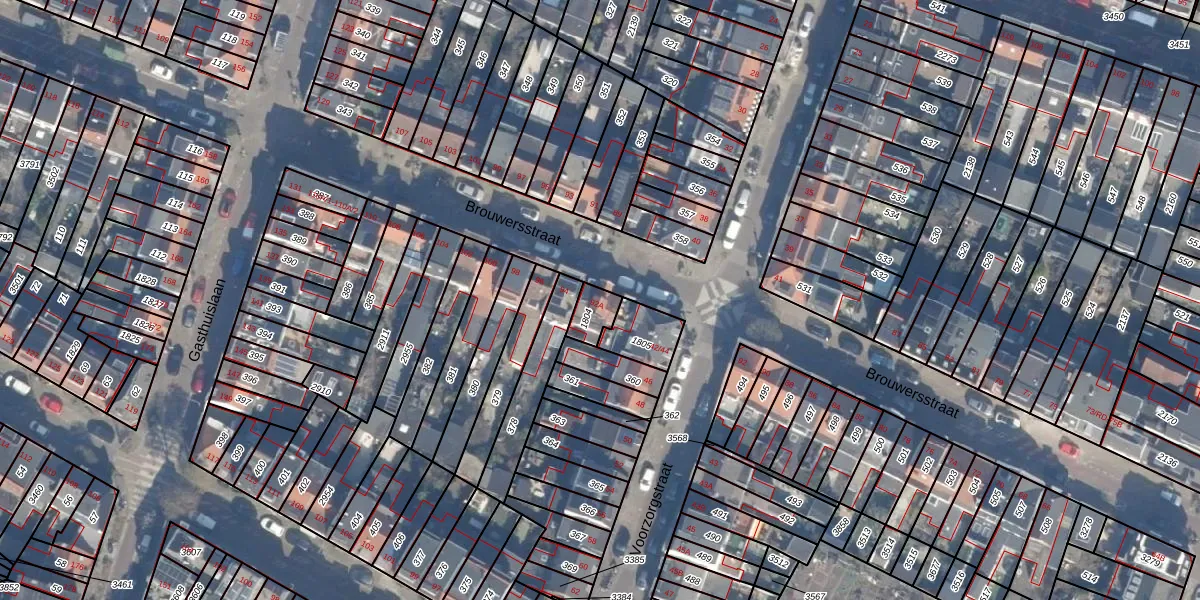 Het perceel waarop Brouwersstraat 92-A staat heeft een oppervlakte van 62 m². Dit is een klein perceel. De perceeloppervlakte wordt geregistreerd door het Kadaster. Gedetailleerde informatie over de maten van dit perceel kunt u vinden in het rapport Kadastrale kaart met maatvoering van Brouwersstraat 92-A.