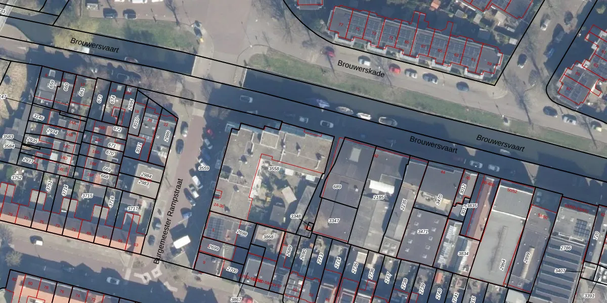 Het perceel waarop Brouwersvaart 30-A staat heeft een oppervlakte van 1040 m². Dit is een zeer groot perceel. De perceeloppervlakte wordt geregistreerd door het Kadaster. Gedetailleerde informatie over de maten van dit perceel kunt u vinden in het rapport Kadastrale kaart met maatvoering van Brouwersvaart 30-A.