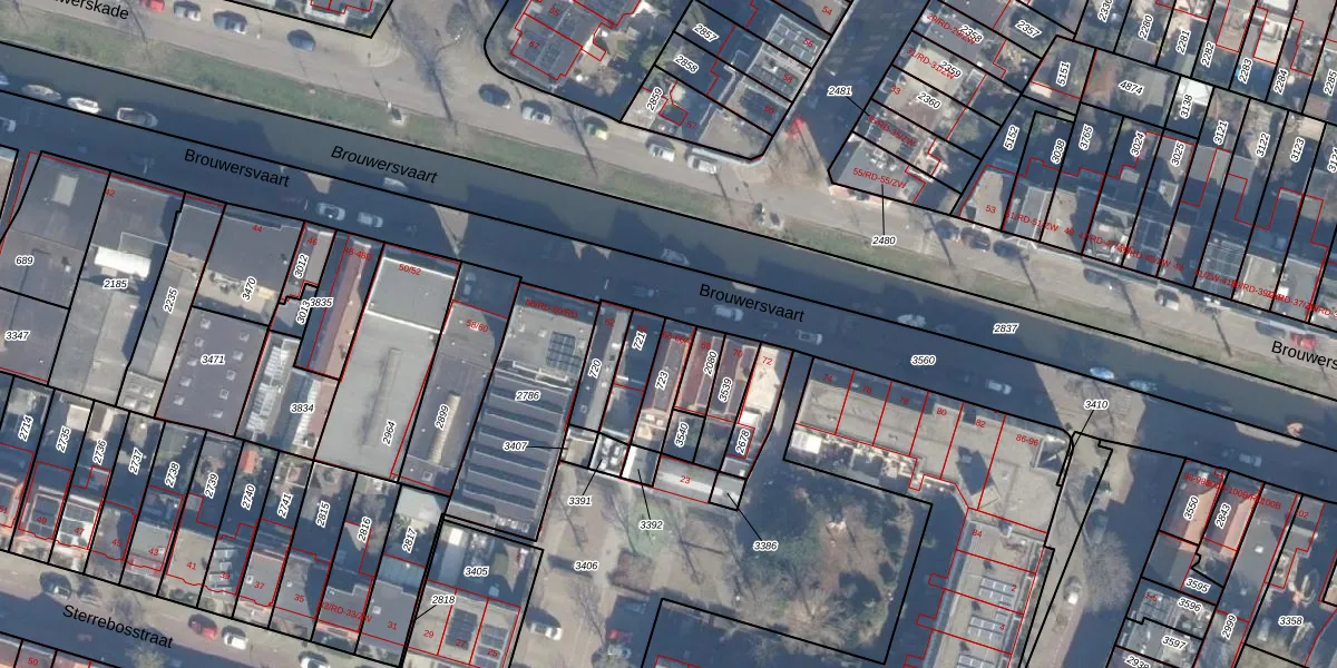 Het perceel waarop Brouwersvaart 66 staat heeft een oppervlakte van 93 m². Dit is een klein perceel. De perceeloppervlakte wordt geregistreerd door het Kadaster. Gedetailleerde informatie over de maten van dit perceel kunt u vinden in het rapport Kadastrale kaart met maatvoering van Brouwersvaart 66.