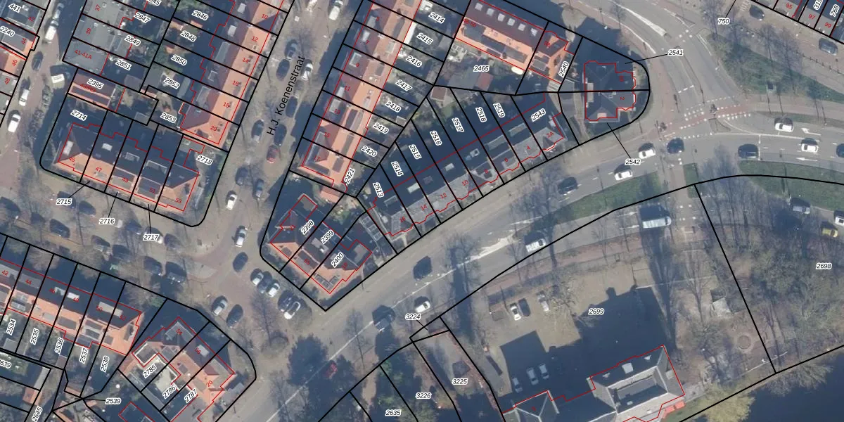 Gebruik de zoekbalk of klik op een perceel voor informatie over de adressen binnen dit perceel.