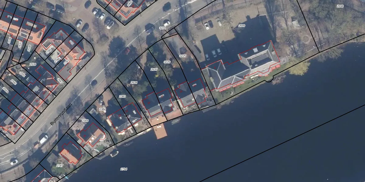 Buitenrustlaan 15 is gelegen op kadastraal perceel HLM01K3226. Deze kadastrale aanduiding is uniek en wordt gebruikt door het Kadaster om eigendomsrechten en andere zakelijke rechten vast te leggen. Het perceel maakt onderdeel uit van de kadastrale gemeente Haarlem.