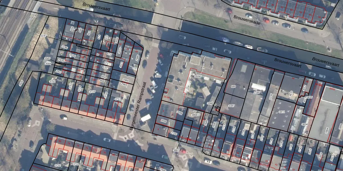 Het perceel waarop Burgemeester Rampstraat 13 staat heeft een oppervlakte van 1040 m². Dit is een zeer groot perceel. De perceeloppervlakte wordt geregistreerd door het Kadaster. Gedetailleerde informatie over de maten van dit perceel kunt u vinden in het rapport Kadastrale kaart met maatvoering van Burgemeester Rampstraat 13.