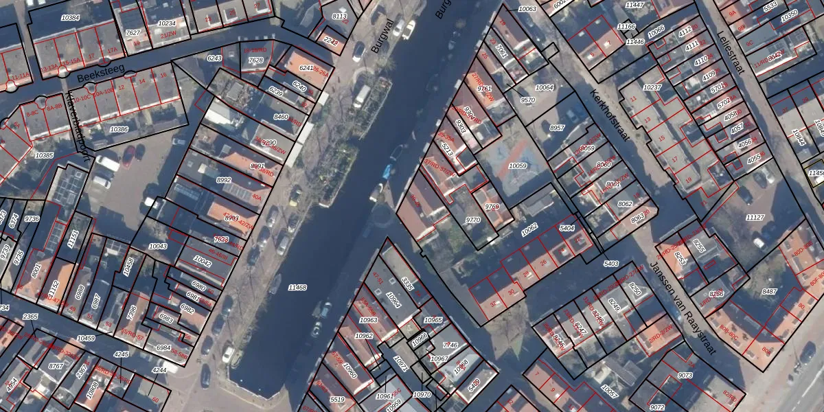 Het perceel waarop Burgwal 43 staat heeft een oppervlakte van 825 m². Dit is een groot perceel. De perceeloppervlakte wordt geregistreerd door het Kadaster. Gedetailleerde informatie over de maten van dit perceel kunt u vinden in het rapport Kadastrale kaart met maatvoering van Burgwal 43.