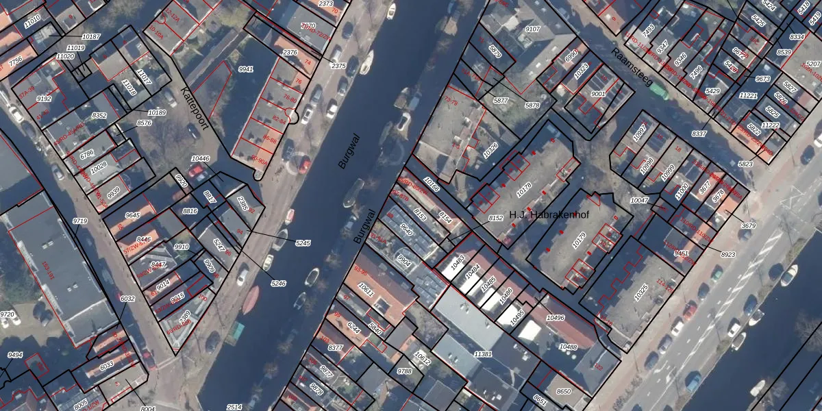 Het perceel waarop Burgwal 87-A staat heeft een oppervlakte van 67 m². Dit is een klein perceel. De perceeloppervlakte wordt geregistreerd door het Kadaster. Gedetailleerde informatie over de maten van dit perceel kunt u vinden in het rapport Kadastrale kaart met maatvoering van Burgwal 87-A.