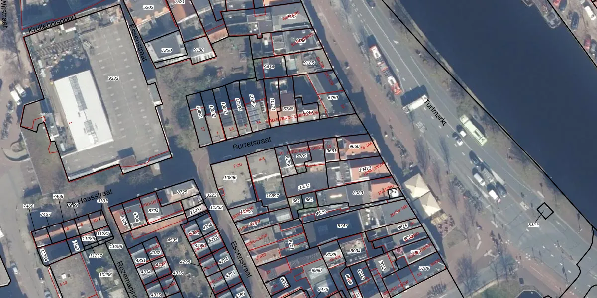 Burretstraat 12-ZW is gelegen op kadastraal perceel HLM01D8700. Deze kadastrale aanduiding is uniek en wordt gebruikt door het Kadaster om eigendomsrechten en andere zakelijke rechten vast te leggen. Het perceel maakt onderdeel uit van de kadastrale gemeente Haarlem.