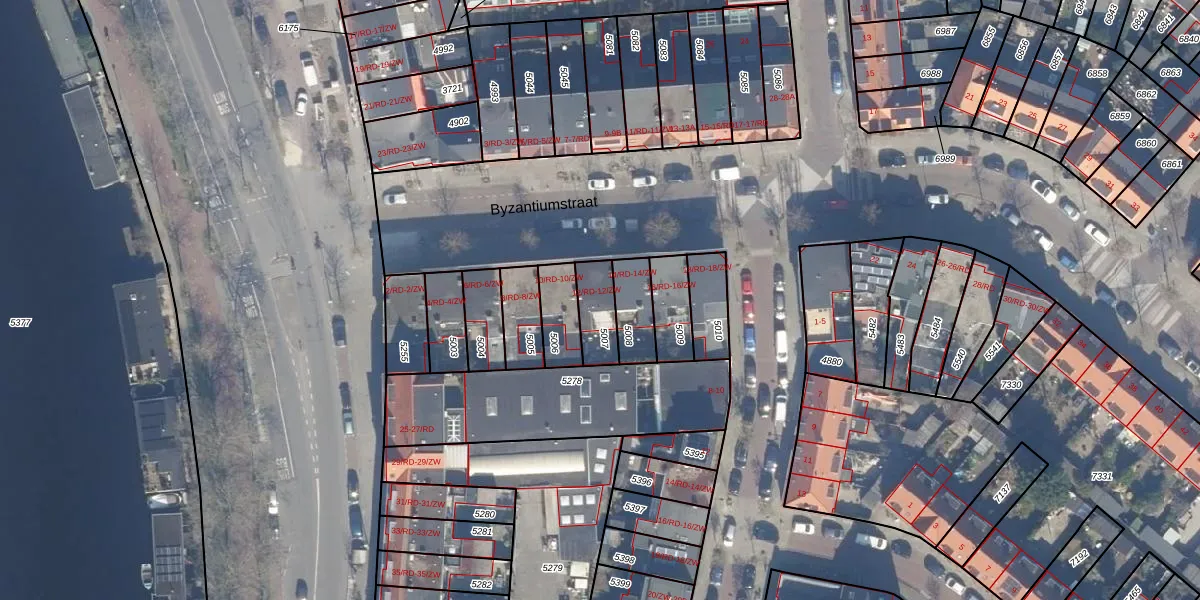 Byzantiumstraat 12-RD is gelegen op kadastraal perceel HLM01E5007. Deze kadastrale aanduiding is uniek en wordt gebruikt door het Kadaster om eigendomsrechten en andere zakelijke rechten vast te leggen. Het perceel maakt onderdeel uit van de kadastrale gemeente Haarlem.