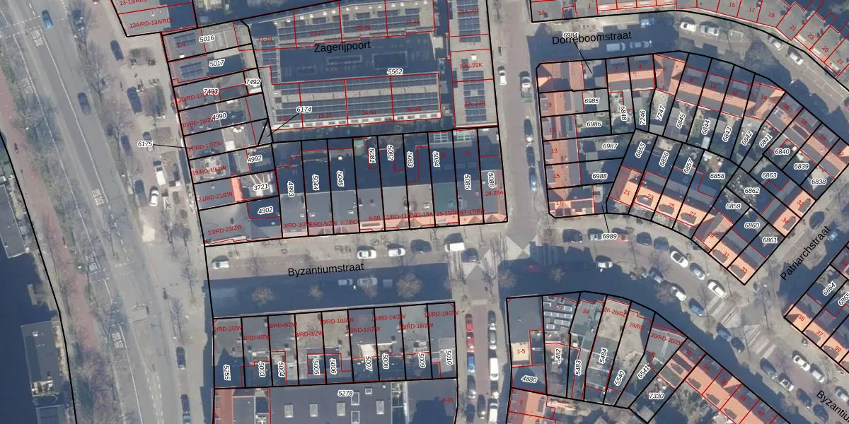 Byzantiumstraat 13 is gelegen op kadastraal perceel HLM01E5083. Deze kadastrale aanduiding is uniek en wordt gebruikt door het Kadaster om eigendomsrechten en andere zakelijke rechten vast te leggen. Het perceel maakt onderdeel uit van de kadastrale gemeente Haarlem.