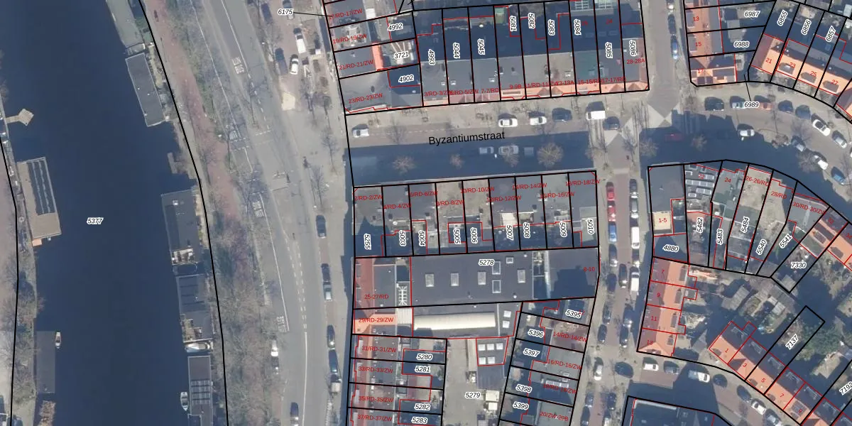 Byzantiumstraat 6-RD is gelegen op kadastraal perceel HLM01E5004. Deze kadastrale aanduiding is uniek en wordt gebruikt door het Kadaster om eigendomsrechten en andere zakelijke rechten vast te leggen. Het perceel maakt onderdeel uit van de kadastrale gemeente Haarlem.