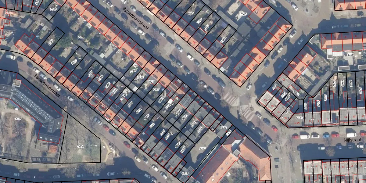 Het perceel waarop Byzantiumstraat 62 staat heeft een oppervlakte van 107 m². Dit is een middelgroot perceel. De perceeloppervlakte wordt geregistreerd door het Kadaster. Gedetailleerde informatie over de maten van dit perceel kunt u vinden in het rapport Kadastrale kaart met maatvoering van Byzantiumstraat 62.