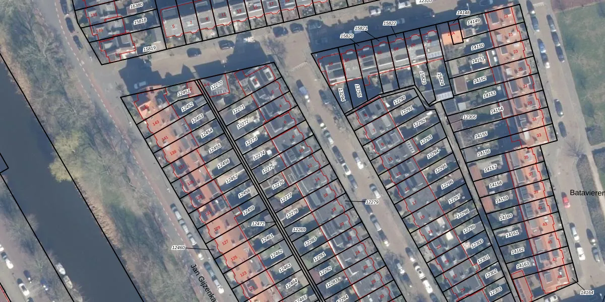 Gebruik de zoekbalk of klik op een perceel voor informatie over de adressen binnen dit perceel.