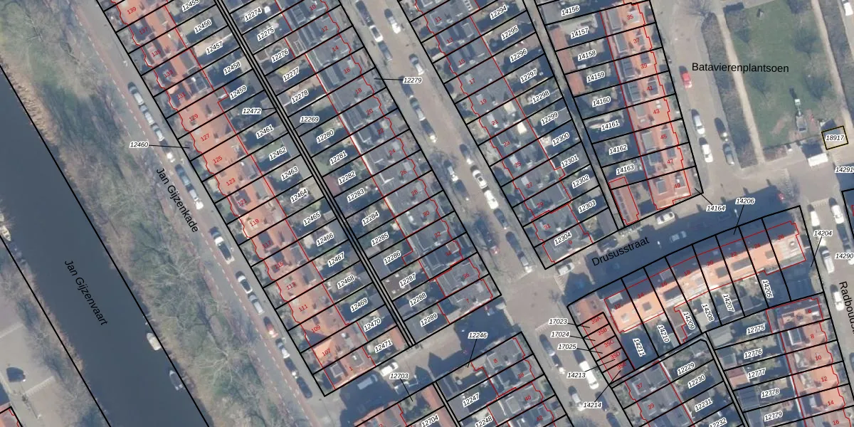 Het perceel waarop Caninefatenstraat 30 staat heeft een oppervlakte van 129 m². Dit is een middelgroot perceel. De perceeloppervlakte wordt geregistreerd door het Kadaster. Gedetailleerde informatie over de maten van dit perceel kunt u vinden in het rapport Kadastrale kaart met maatvoering van Caninefatenstraat 30.